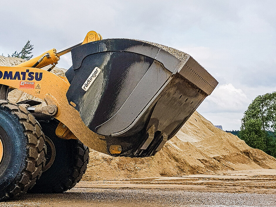 Schließlich gehört zu einem guten Produkt noch guter Service: Bestes Beispiel ist der Löffel, den das Unternehmen SSR Mineralgestein im Einsatz hat – beziehungsweise die beiden Löffel. Um Standzeiten des Trägergeräts, ein Komatsu PC1250, auf ein Minimum zu reduzieren, ist immer einer der beiden Löffel zur Regeneration bei Rädlinger in Cham, während sein Bruder vor Ort im Einsatz ist. Einer der beiden Löffel kann, frisch regeneriert, im September auf der Bauma in München bewundert werden.