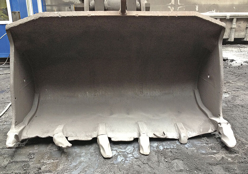 Dank einer besonderen Kombination von hoher Festigkeit, einer gleichmäßigen Härte von bis zu 600 HBW und sehr guter Kerbschlagarbeit erhöht sich mit dem Einsatz von Hardox die Leistungsfähigkeit und Verfügbarkeit. Die Kombination aus reinen Rohstoffen, ausgewogenen Legierungskonzepten und entsprechenden Härteprozessen bildet die Grundlage für die Produktion des verschleißfesten Feinkornstahlbleches Hardox. Weil bei der Beladung mit heißer Schlacke die äußeren Eckzahnhalter extrem belastet werden, entschieden sich HS-Schoch-Verschleißschutzexperte Mirko Ritter und die Verantwortlichen im Stahlwerk für das Ultralok-Zahnsystem von Esco. Auch die speziellen heiße Schlacke-Sicherungen sprachen für den Einsatz des Esco-Systems. Überdies wurden die in der inneren Schaufelbodenrundung entstandenen Risse mit einem Fugenhobel ausgenutet, beschliffen und anschließend verschweißt.