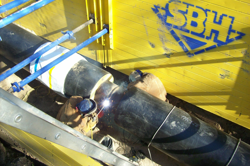 Zu den besonderen Herausforderungen der Baumaßnahme zählen die Unterquerungen von Verkehrsadern, so zum Beispiel einer Güterbahnstrecke und der A 40. „Diese erfolgen im gesteuerten Pilotrohr-Vortriebs-Verfahren. Bei diesem Verfahren wird zunächst ein Pilotrohrstrang DN 100 gesteuert entlang einer vorgegebenen Bohrlinie vorgetrieben. Das Pilotgestänge wird danach mit Bohrkopf und Schnecken der Zwischenrohre DN 400 verbunden und hydraulisch eingepresst. Gleichzeitig wird über die innenliegenden Förderschnecken der Bohrkopf angetrieben“, erklärt Dipl.-Ing. Manfred Janzen, Projektleiter bei Reinhard Rohrbau GmbH. „Nach der Aufweitung werden im gleichen Verfahren letztendlich die Schutzrohre DN 800 eingepresst und darin die Produktenrohre mit Abstandhaltern eingebracht.“