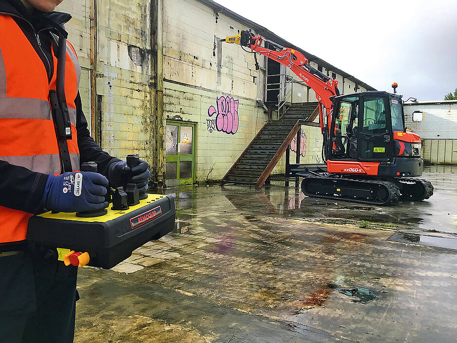 Aufgrund dieser Flexibilität kann eine Baumaschine bei Bedarf als Spezialmaschine eingesetzt werden. Ist beispielsweise die Abbrucharbeit erledigt, lässt sich die Maschine wieder auf die herkömmliche Steuerung in der Kabine zurückstellen. Dies erweist sich als kosteneffizient und bequem für Bauunternehmen, da der Kauf oder die Anmietung spezieller Maschinen wie Abbruchroboter und anderer Geräte, die nur gelegentlich eingesetzt werden, entfällt. Außerdem werden Ausfallzeiten auf der Baustelle vermieden, da keine Wartezeiten entstehen, die mit der Beschaffung spezieller Geräte verbunden sind. Das System kann an die meisten Bagger- und Laderfabrikate angebaut werden. Remoquip produziert zudem eine spezielle Reihe von Robotern ab 3 t aufwärts. Diese werden typischerweise bei Abbrucharbeiten und in der Stahl- und Zementindustrie für Ofenreinigungs- und Entzunderungsarbeiten eingesetzt, wo die Umgebung zu beengt oder so extrem ist, dass ein Betrieb in der Kabine nicht möglich wäre. Der resultierende Roboter ist ohne Kabine viel kompakter. Remoquip bietet außerdem maßgeschneiderte Lösungen für Kunden.d