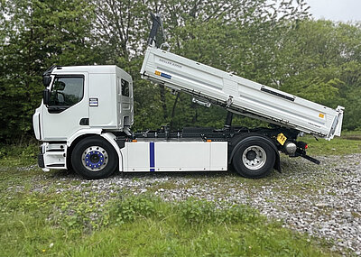 Nachdem Renault Trucks eine komplette Reihe elektrischer Fahrzeuge für den Verteilerverkehr vorgestellt hat, setzt die zu Volvo gehörende Lkw-Marke ihren Weg in Richtung emissionsfreiem Transport fort und fertigt ihren ersten Elektro-Lkw für den Baustellentransport. Erhalten wird den ersten mit Kippmulde und Kran ausgestatteten 26-Tonner D Wide Z.E. 6x2 mit gelenkter Hinterradachse der französische Vermieter Noblet. Das vollelektrische Fahrzeug ist mit vier Batteriepaketen à 66 kWh ausgestattet, die per AC-Ladung (Typ 2) in weniger als zehn Stunden an einer 22-kW-Steckdose aufgeladen werden können oder in weniger als zwei Stunden an einer DC-Schnellladevorrichtung (CCS). Das Fahrzeug, das in der Ile de France um Paris eingesetzt werden soll, kann in der Nähe des Einsatzortes oder an Pariser Ladestationen, die für Nutzfahrzeuge angepasst wurden, aufgeladen werden. Eine Teilaufladung von einer Stunde (AC 22 kW) verschafft dem Fahrzeug eine Reichweite von 15 km bis 20 km. t
