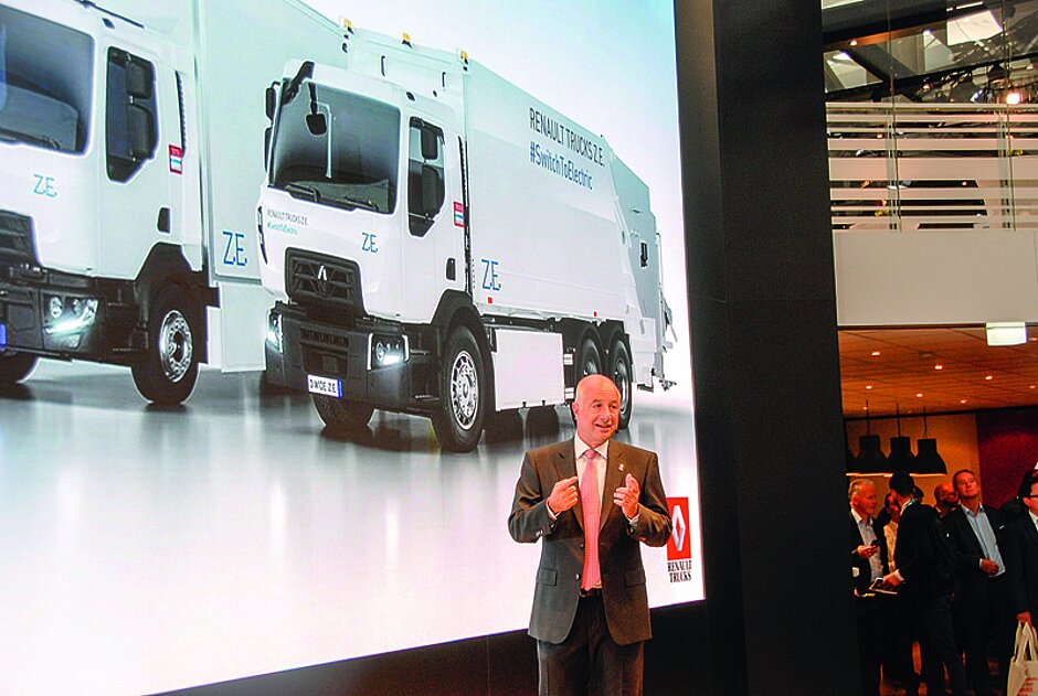 Den Renault Master Z.E., den Renault Trucks D Z.E. und den Renault Trucks D Wide Z.E. Diese komplette Verteilerverkehr-Baureihe von 3,1 t bis 26 t im innerstädtischen Einsatz ist sowohl für die Warenlieferung und -verteilung als auch für Entsorgungstransporte geeignet. »Vor zehn Jahren sind wir als erster Hersteller mit dem Ziel angetreten, den Weg für den Elektro-Lkw zu ebnen, um so die Luftqualität in den Innenstädten zu verbessern. Und heute sind wir startbereit«, sagte Bruno Blin, Präsident von Renault Trucks, bei der Präsentation in Hannover. »Jetzt verfügen wir über eine leistungsstarke Baureihe von Elektrofahrzeugen.