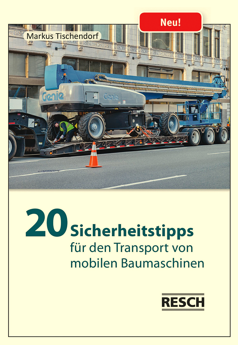 Transporte von mobilen Baumaschinen wie Bagger, Radlader, Teleskopstapler und Hubarbeitsbühnen sind eine anspruchsvolle Aufgabe. Da diese aufgrund großer Entfernungen meist nicht selbst zur Baustelle gefahren werden können, müssen sie mit Lkw, Tiefladern oder Zugmaschinen befördert werden. Wenn aber die Beförderung nicht fachgerecht durchgeführt wird, entstehen erhebliche Gefährdungen für Mensch und Umwelt. Um den sicheren Transport von Baumaschinen zu erleichtern, hat Markus Tischendorf den im Resch-Verlag erschienenen kleinen Praxis-Ratgeber »20 Sicherheitstipps für den Transport von mobilen Baumaschinen« verfasst. Er ergänzt die Betriebsanleitungen der eingesetzten Arbeitsmittel und informiert über typische Gefährdungen beim Transport, wie Defizite bei der Lastverteilung und der Ladungssicherung. Außerdem zeigt er auf, was zur Abwendung dieser Gefahren getan werden kann. Die 20 Sicherheitstipps sollen dem Vorgesetzten dabei helfen, dies auf eine fachgerechte Weise zu tun. Die kleinformatige Broschüre bietet sich zudem als ein idealer Begleiter für die tägliche Arbeit des Fahr- und Ladepersonals an – er passt in jede Hemdtasche. t