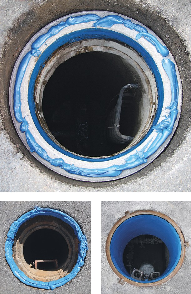 Insbesondere an Orten, an denen Bauteile verschiedener Materialien untereinander in Bewegungen sind, sei es durch Temperaturschwankungen oder Vibrationen durch Schwerlastverkehr, soll FlexPox als Lösung dienen. Denn das dauerflexible, blaue Epoxidharz ist flexibel in jeder Hinsicht: Mit einer Stauchbarkeit von bis 50 % und einer Dehnbarkeit von bis zu 20 % macht es beim Abdichten von Fugen, Schachthälsen, Rissen, aber auch bei der Schachtrahmenregulierung eine gute Figur.