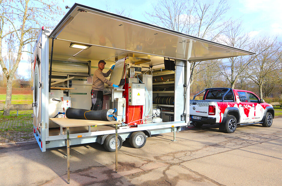 Das Original PARTLINER-System und der Gerinneliner der resinnovation GmbH hatten ihre großen Auftritte, als die Fachwelt sich noch persönlich auf den großen Branchenmessen wie RO-KA-TECH und IFAT treffen konnte. Im vergangenen Jahr wäre das Team der resinnovation gerne mit dem neuen Sanierungsanhänger auf der IFAT vorgefahren, nun präsentiert dieser sich, der aktuellen Situation entsprechend, ab dem 15. März 2021 auf der virtuellen RO-KA-TECH am Stand der resinnovation GmbH. Dort erhalten die Besucher einen Eindruck in Bild und Film über den jüngsten Anhang des Harzherstellers – einen Anhang, der es in sich hat. Mit dem Sanierungsanhänger, den Interessenten für Präsentationen oder Sanierungsprojekte auch mieten können, wird die nächste Kurz- oder Gerinnelinersanierung ein Ereignis. Bei geöffneter Seitenklappe des Anhängers wird dieser zu Bühne: Interessierte Dienstleister und Auftraggeber können die Sanierung mit dem PARTLINER-System gut verfolgen.
