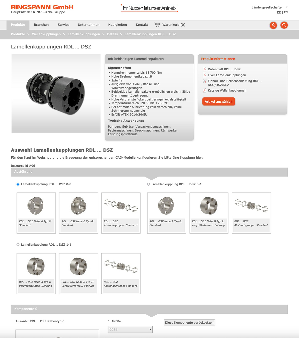 Die Herstellung der Lamellenkupplungen erfolgt bei Ringspann meist individuell im konkreten Zusammenhang mit Kundenprojekten und Aufträgen, weshalb Aufwand und Lieferzeit stark schwanken. „Gerade in jüngster Vergangenheit haben wir jedoch beobachtet, dass bestimmte Varianten und Typen inzwischen über lange Zeiträume in steter Regelmäßigkeit geordert werden“, berichtet Martin Schneweis. Diesen Trend hat der Produktmanager aufgegriffen und gemeinsam mit seinem Team einen neuen Systembaukasten entwickelt, der es nun ermöglicht, zahlreiche Standardausführungen der Lamellenkupplungen der Baureihen RDL…DSO/ DSZ/ DSA schnell kundenspezifisch auszulegen und zu konfigurieren. Dieser Baukasten steht ab sofort zur Verfügung und wurde in der finalen Entwicklungsphase auch in den Ringspann-Webshop integriert. „Hier können erfahrene Konstrukteure oder Einkäufer die benötigte Lamellenkupplung bei Bedarf also auch gleich online konfigurieren. Dabei erfahren sie direkt den Preis und den Liefertermin und können ein 3D-Modell downloaden“, erläutert Martin Schneweis.