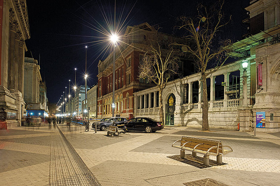 Jährlich strömen bis 11 Mio. Besucher in die Exhibition Road, die sich in unmittelbarer Nähe zum Hyde Park und der Royal Albert Hall befindet. Bis zum Umbau wurde die Straße vor allem von Verkehr dominiert. Aus diesem Anlass entwickelten die Planer ein neues Konzept: Die großen Museen und Prunkbauten wie das Natural History Museum oder das Imperial College sollen durch einen sogenannten Shared Space in den Vordergrund gerückt werden. Auf 26 000 m² teilen sich nun Fußgänger, Radfahrer und Autos die knapp 1 km lange Straße. Bürgersteige, Verkehrsschilder sowie Fahrspuren wurden entfernt und mit einer einheitlichen Oberfläche versehen. Das Straßenmuster in schwarz-weißen Karo soll dabei den Bewegungsverlauf der Fußgänger aufzeigen – von einem Museum zum anderen.Auch bei der Entwässerung setzte man auf Premium-Qualität. Der Baden-Badener Rinnenspezialist Birco konnte eine maßgeschneiderte Lösung bieten: Das Rinnensystem Bircosir in Nennweite 150 eignet sich besonders gut für die viel besuchte Museumsstraße, denn es wurde mit der Belastungsklasse E 600 für stark befahrene und belastete Flächen entwickelt. Auch das zeitlose und schlichte Design der Abdeckung in schwarzer Tauchlackierung überzeugte. Die Projektabwicklung erfolgte über den Kooperationspartner Marshalls. Insgesamt wurden umgerechnet fast rund 29 Mio. Euro in das Projekt investiert.