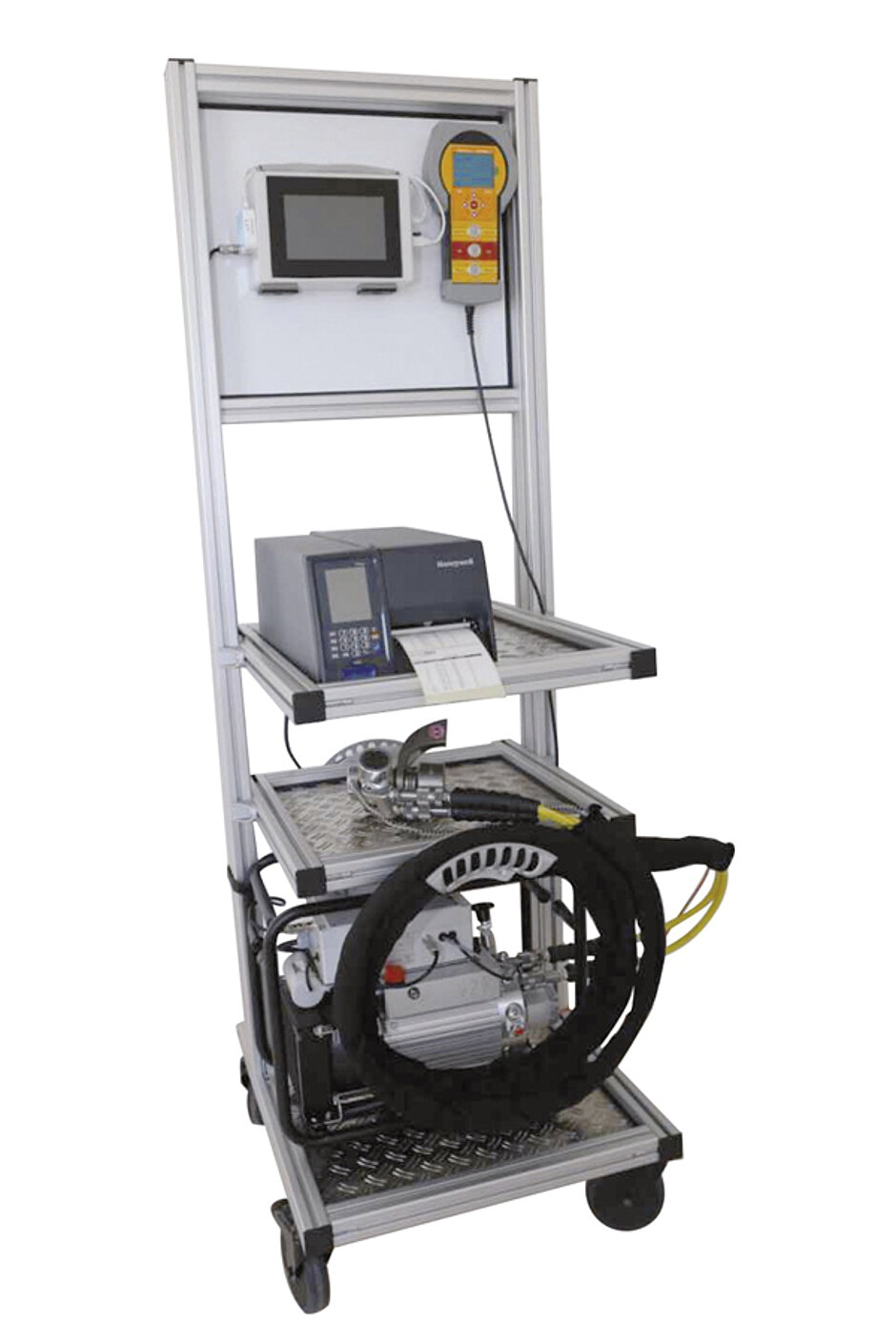 Der robuste Wagen bringt alle Komponenten sicher zum jeweiligen Einsatzort. Der Scanner liest beispielsweise Strich- und QR-Codes sowie RFID-Tags ein und kann so unter anderem die Angaben zum jeweiligen Verschraubungsfall auslesen. Diese Daten dienen dann dazu, die Dokumentationspumpe (beispielsweise die HYTORC Eco2TOUCH) mit den korrekten Parametern zu versorgen. Die Pumpe gibt diese Daten dann nicht nur fehlerfrei immer wieder an das Verschraubungswerkzeug (beispielsweise Hydraulikschrauber von HYTORC) weiter. Sie zeichnet darüber hinaus auch alle während des Verschraubens erfassten Werte auf und sorgt so für die geforderte Dokumentation. Der ebenfalls auf den Wagen montierte Label-Drucker gibt am Ende der Verschraubung alle für den Fahrzeugbegleitordner relevanten Daten aus.
