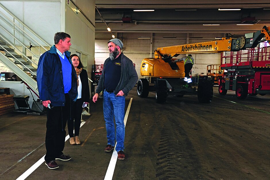 Bei einem Vor-Ort-Besuch hat sich Reinhard Willenbrock, Repräsentant der IPAF Deutschland, gemeinsam mit Janina Tapper, Germany Member Support, von den neuen Räumlichkeiten ein eigenes Bild gemacht. Um als Schulungszentrum akkreditiert zu werden, prüft die IPAF verschiedene Faktoren: »Für uns ist wichtig, dass die theoretischen Schulungen in technisch voll ausgestatteten Räumlichkeiten stattfinden können, um ein optimales Lernen zu ermöglichen. Außerdem müssen natürlich alle Sicherheitsvorgaben eingehalten werden, angefangen beim Feuerlöscher und Erste-Hilfe-Kasten bis hin zu Vorhandensein von moderner Persönlicher Schutzausrüstung«, so Willenbrock. Auch der Parcours für die praktischen Prüfungen wurde inspiziert und für gut befunden. »Wir haben hier in Hamburg zwei Bereiche, einen in der Halle und einen im Außenbereich. So stellen wir sicher, dass die Prüfungen unabhängig vom Wetter immer durchgeführt können«, so Ingo Steinberg, Leiter der Riwal Akademie und IPAF-zertifizierter Trainer. Willenbrock zeigte sich auch von verschiedenen Zusatzleistungen angetan. Jeder Teilnehmer erhält beispielsweise eine Schulungsmappe, in der sie alle notwendigen Materialien und Nachweise sammeln können. »Solche kleinen, von der IPAF nicht zwingend vorgeschriebenen Zusatzleistungen zeigen das besondere Anspruchsdenken, das Riwal beim Thema Bedienerschulungen an den Tag legt«, so Reinhard Willenbrock.