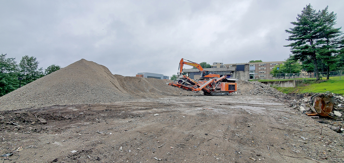 Ende 2020 hat Caravella Demolition den Auftrag zum Abriss des fünfstöckigen Wohnheimgebäudes »Overlook North Dormitory« auf dem Gelände der William Paterson University erhalten. Im Rahmen des Auftrags sollte das gesamte beim Abriss anfallende Mauerwerk vor Ort zerkleinert werden, um es als Verfüllung für den entstandenen Abbruchhohlraum wiederzuverwenden – eine Aufgabe für die Rockster-Prallbrecher R1100DS.