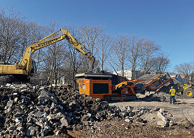 Der »R1000« wurde speziell für Anwendungen entwickelt, bei denen Flexibilität, Mobilität und Zuverlässigkeit im Vordergrund stehen. Mit seinem kompakten Design eignet sich der Prallbrecher besonders gut für innerstädtische Baustellen, Abbrucharbeiten sowie mittelgroße Steinbrüche. Dabei sorgt die robuste Bauweise für eine hohe Lebensdauer – auch unter anspruchsvollen Einsatzbedingungen. Besonders hervorgehoben wurden auf der Bauma das zweiteilige Rückführ-Haldenband, das ein effizientes Kreislaufmaterialmanagement bzw. die zweite End-Fraktion ermöglicht, sowie die einfache Einstellung der Brechspaltweite per Display. Die intuitive Bedienoberfläche und der schnelle Zugriff auf alle Wartungspunkte machen den »R1000« zu einer benutzerfreundlichen Maschine.