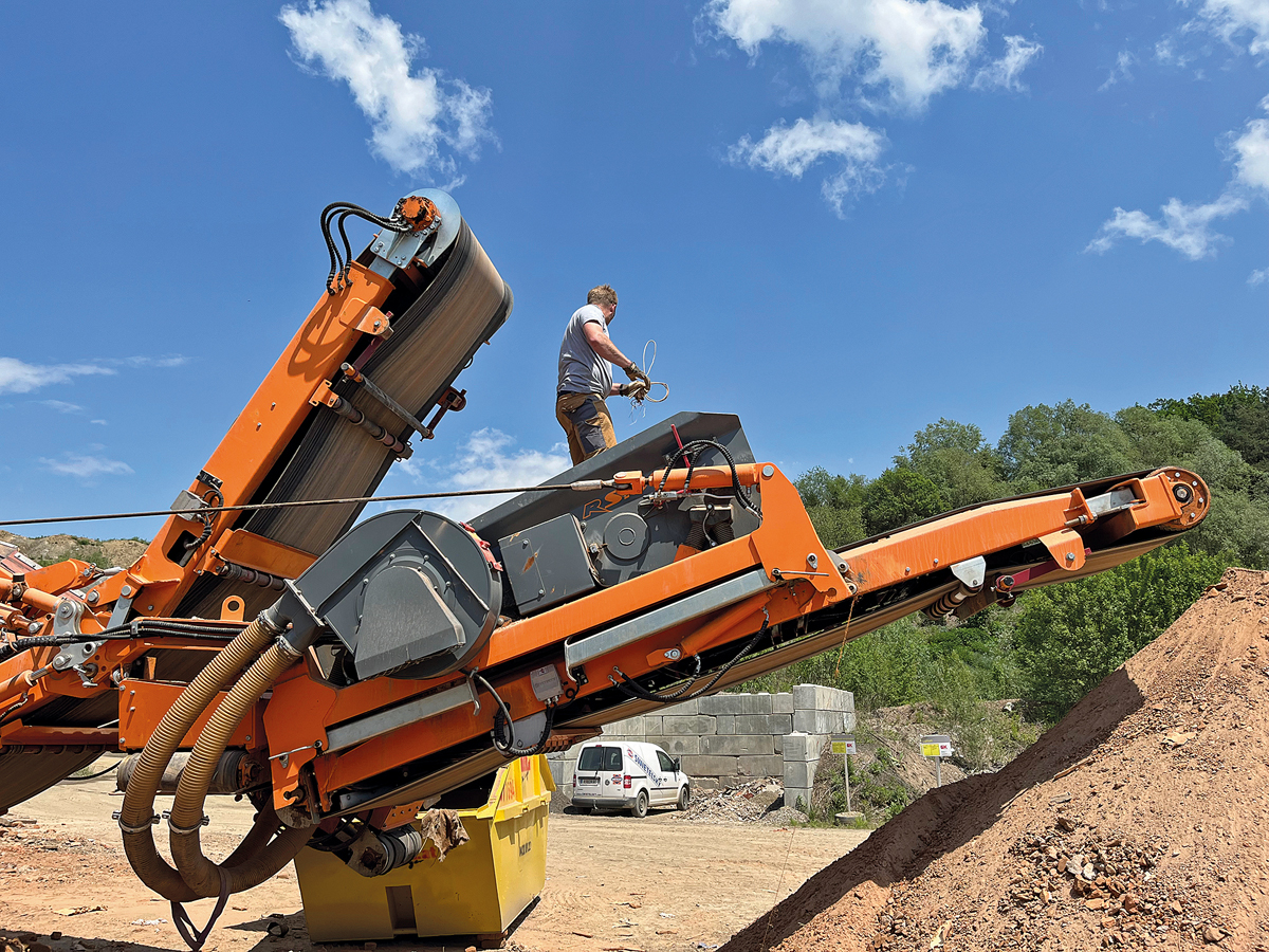 Das hydraulisch klappbare Hauptaustragsband erleichtert den Zugang zum Siebkasten.