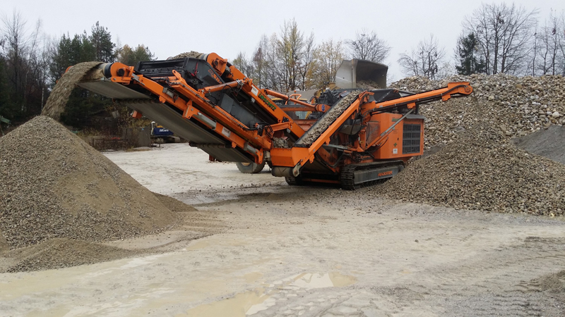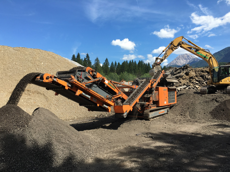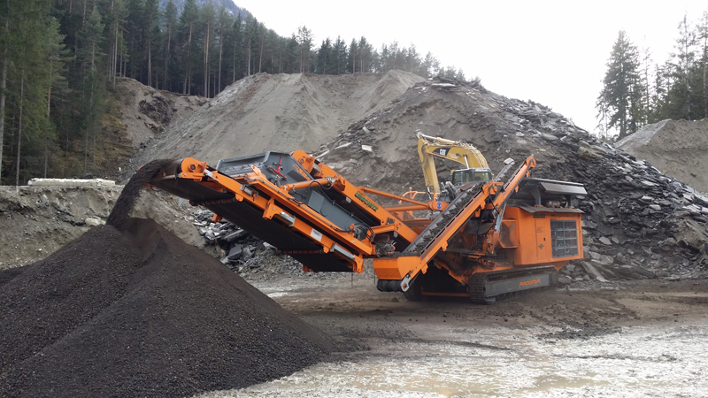 Aufgrund der steigenden Nachfrage nach kleineren Körnungen im Jahr 2015 - besonders im Wegebau wird ein Asphalt-Feinplaniematerial von 0/16 oder 0/22 bevorzugt - entschied sich Bruno Urschitz, eine neue Brechanlage anzuschaffen. „Ich habe schnell den R1100DS ins Auge gefasst, jedoch war mir die bestehende Siebfläche zu klein. Rockster hat auf meine Bedürfnisse reagiert und daraufhin eine neue Siebbox mit 3100 x 1350mm konstruiert, mit welcher auch bei Korngrößen unter 22mm eine gute Durchsatzleistung erzielt wird. Ein weiterer wesentlicher Vorteil dieses Siebsystems ist die Haldenfunktion des Rückführbandes, welche uns die Erzeugung von zwei Fraktionen in einem Arbeitsgang ermöglicht. Die Haldenfunktion nützen wir vor allem in der Kiesgrube. Ich kann die Maschine außerdem inklusive Siebsystem transportieren und da wir die Anlage zu 70% bei Kunden vor Ort einsetzen, spielen einfacher Transport und geringes Gewicht eine wichtige Rolle,“ so der Kärntner Unternehmer.