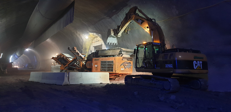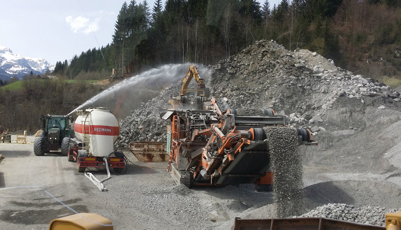 Mario Dreier ist mit seinem Brecher in der Umgebung von Osttirol bis Wolfsberg unterwegs und bedient auf den Baustellen zudem auch den Bagger. „Vom Abladen der Maschine bis zum ersten Löffel benötige ich genau 11 Minuten. 4 Minuten mehr, wenn ich den Brechspalt neu einstellen muss. Sind bei einer Baustelle mehrere Körnungen gewünscht, kann ich dank des absenkbaren Hauptbandes und des Schnellwechselsystems in kürzester Zeit den Siebbelag tauschen. Sollte sich zwischen Hauptband und Magnetband zum Beispiel ein Eisenteil verkeilen, kann ich es durch Absenken den Hauptbandes leicht entfernen, diese Funktion ist wirklich sinnvoll. So kann man einfach zügig arbeiten, das gefällt mir besonders an dem Rockster Brecher,“ so der Vollblut-Maschinist.