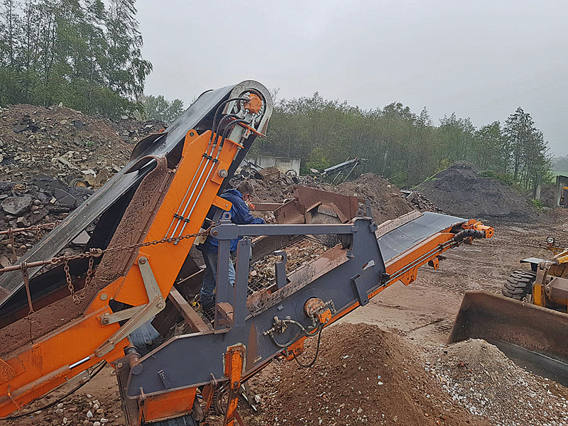 Das Tauschen oder Reinigen von Siebbelägen nimmt im Brechalltag von Holger Koppitz immer wieder viel Zeit in Anspruch. Hier eine effiziente Lösung zu erhalten, war für ihn essenziell. Eigens für ihn wurde die Siebbox RS83 von Rockster umkonstruiert und ist nun wie die RS100 bis zum Boden senkbar. Das Hauptband kann nun im Betrieb runtergefahren und hochgeklappt werden. Dies ermöglicht das Säubern und Wechseln der Siebe in aufrechter Position. »Die Unkosten für die Neukonstruktion und den Umbau hatte ich durch die gewonnene Zeitersparnis in drei Monaten wieder erwirtschaftet«, betont der Inhaber.