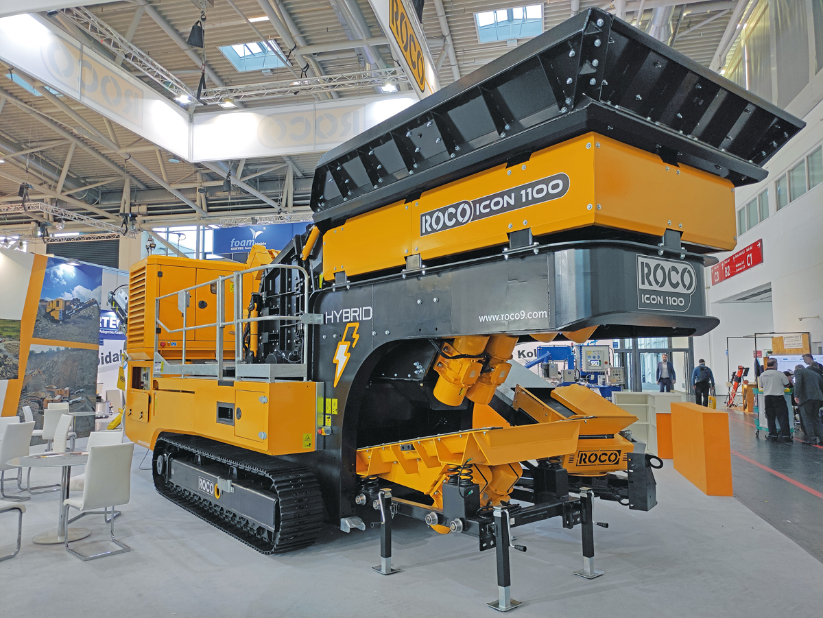 Die Erfahrungen aus dem Premierenmodell inspirierten die Roco-Entwickler bei der Bauma-Neuheit Icon 1100. Dieser Prallbrecher liefert laut Roco mit einem leistungsstarken 4-bar-Rotor ein 20:1-Zerkleinerungsverhältnis. Zu den weiteren Merkmalen zählen u. a. ein vollständig demontierbares Austragband und ein optionales unabhängiges 2-Deck-Vorsieb. Auch der Icon 1100 ist serienmäßig ein diesel-elektrischer Hybrid, der im Vergleich zu herkömmlichen diesel-hydraulischen Brechern rund 40 % Kraftstoffkosteneinsparung bieten soll.