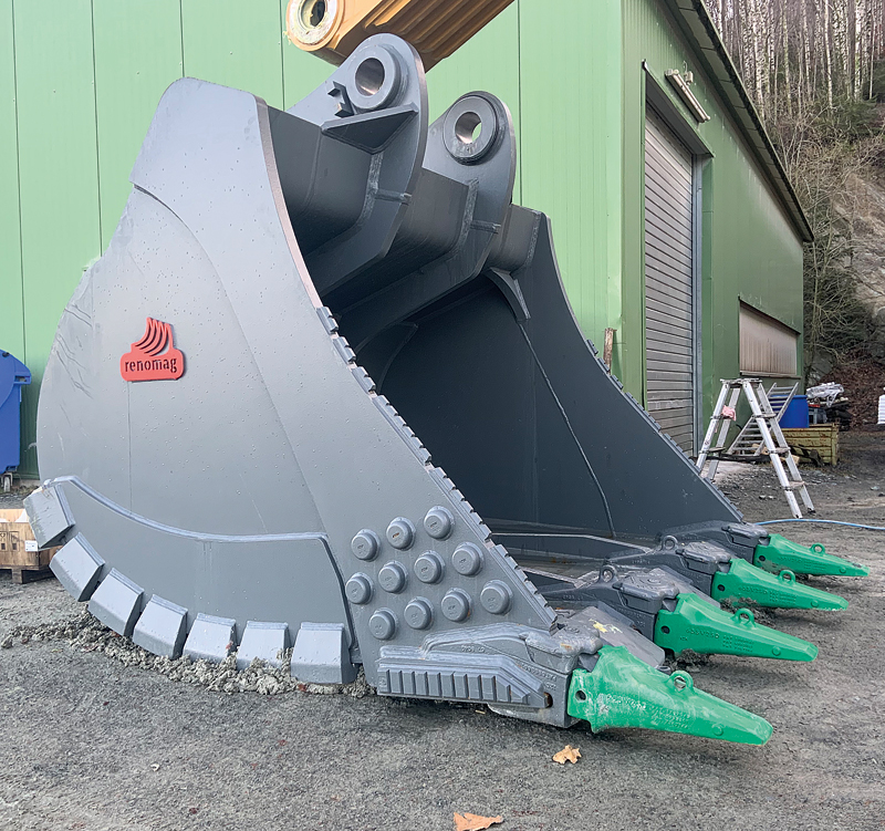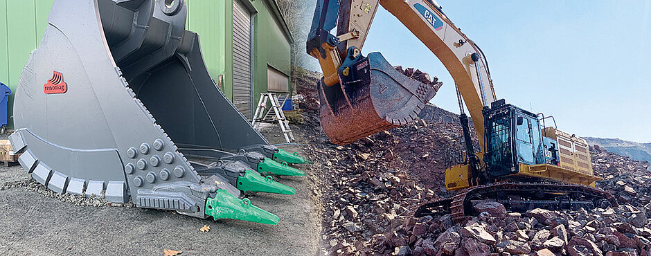 Insbesondere gelte dies auch bei der neuesten Produktlinie von Rocworks. »Seit Ende letzten Jahres bieten wir Anbauwerkzeuge von Renomag exklusiv für den deutschen Markt an«, berichtet Führer. »Die Löffel, Schaufeln und auch Knäpperkugeln von Renomag haben uns in allen unseren Betrieben auf ganzer Linie überzeugt.« Besonders hervorzuheben sei, dass es sich nicht um Standardanbauwerkzeuge handle, sondern um auf den jeweiligen Maschinentyp und vor allem auch Einsatz optimierte Einzelstücke.