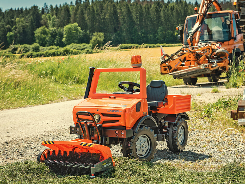 Kindern macht es großen Spaß, mit dem rollyUnimog durch Pfützen, Matsch und Sand zu fahren und die Geländetauglichkeit zu testen. Die Eltern freuen sich, dass dank der Kotflügel über allen Rädern der gröbste Schmutz abgehalten wird. Eltern, Großeltern und vor allem Nachbarn schätzen es zudem, dass die rollyUnimog-Linie trotz des groben Stollenprofils mit »Flüsterreifen« ausgestattet ist. An den Front- und Heckkupplungen lassen sich Geräte wie Heckbagger, Seilwinde, Schneeräumschild, Straßenreinigungsgerät anbauen oder ein Streuanhänger anhängen. t