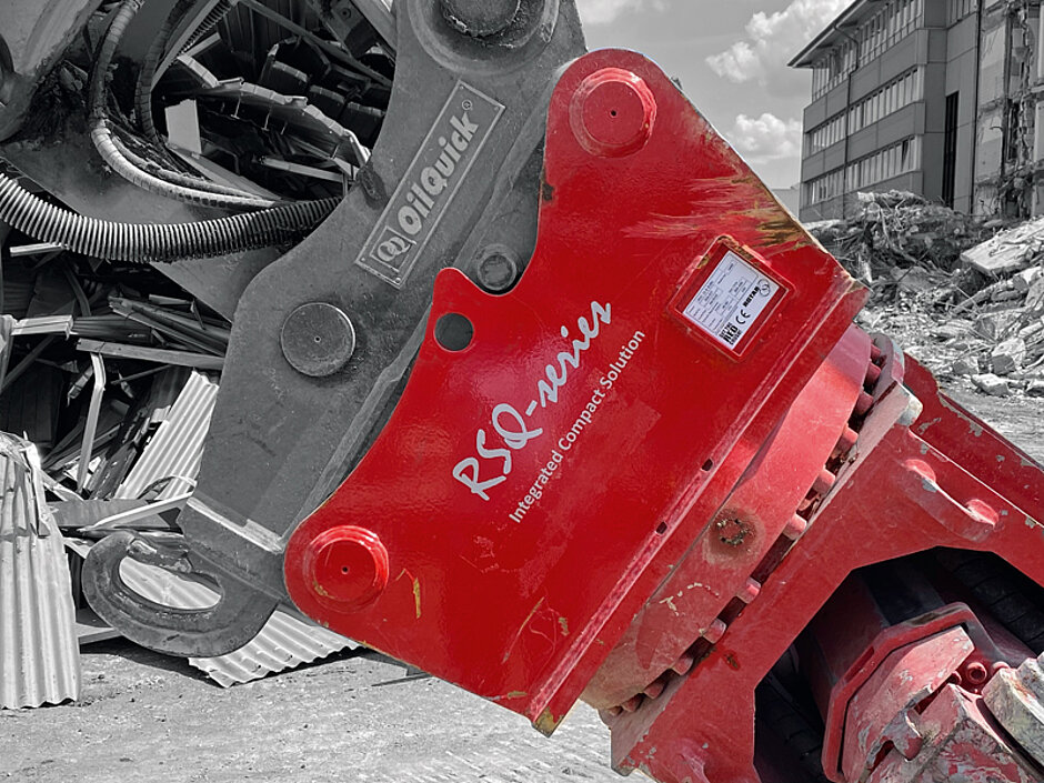 Den Rotar-Adapter RSQ haben die Ingenieure in die Konstruktion der Anbaugeräte integriert. Hierbei wurden auch die hydraulischen Verbindungen und Schläuche mit eingeplant. Das obere Kopfteil der Anbaugeräte wurde hierfür neu konstruiert und für die Integration des Adapters optimiert.