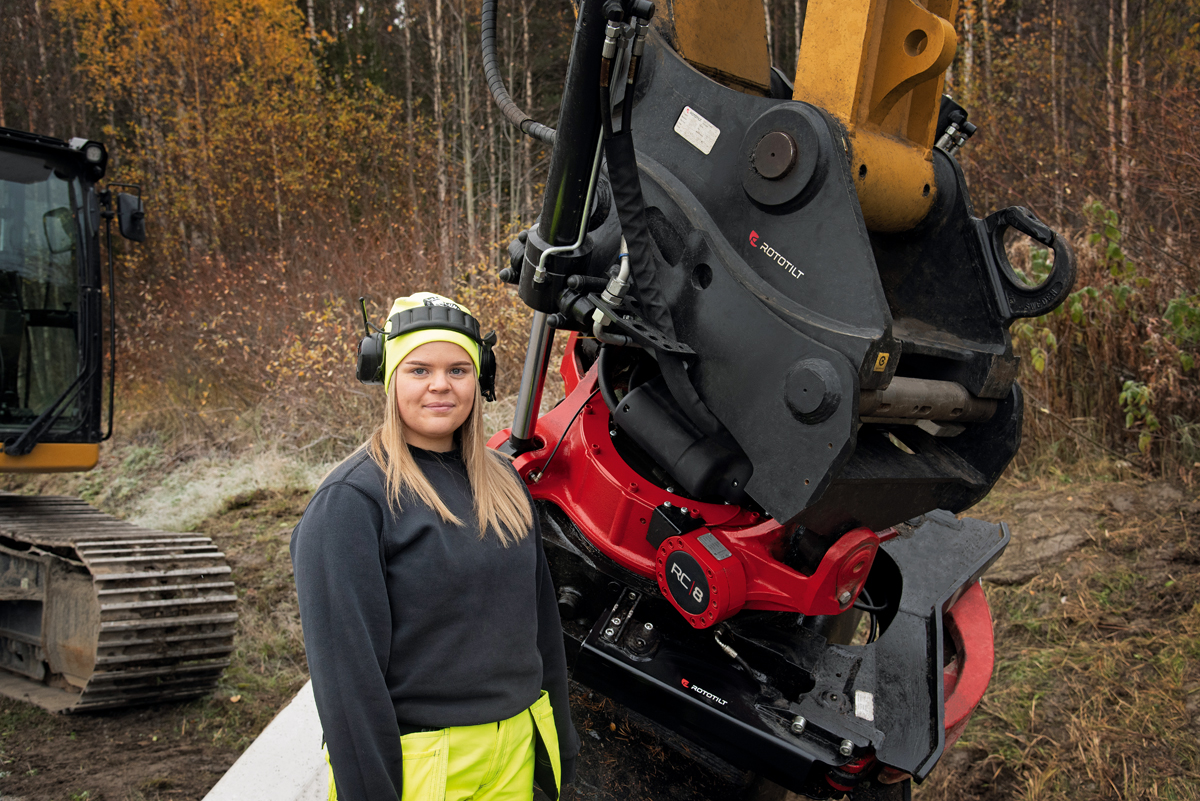 Eigentlich hatte Eira geplant, einmal als Ingenieurin am Schreibtisch zu arbeiten. Aber gegen Ende des zweiten Jahres ihres Technikzweigs am Gymnasium fühlte sich das nicht mehr richtig an. Sie wollte einen anderen Weg einschlagen. »Das Gymnasium habe ich noch zu Ende gemacht, aber eigentlich träumte ich schon damals davon, Lastzüge zu fahren. Ich entschied mich letztlich für eine Erwachsenenausbildung als Baggerfahrerin, denn das sprach mich mit der Zeit immer mehr an, und die Ausbildung hat dann auch echt Spaß gemacht.« Über ein Praktikum beim Unternehmen Hägglunds Last & Schakt im nordschwedischen Lycksele erhielt Eira das Angebot einer Festanstellung. Jetzt, zweieinhalb Jahre später, bereut sie ihre Entscheidung überhaupt nicht. »Ich habe das Richtige für mich gefunden. Zum großen Teil kann ich selbst entscheiden, wie mein Arbeitstag aussieht, und diese Freiheit weiß ich zu schätzen. Natürlich gibt es auch lange Tage, wenn ich im Winter noch Dienst mit dem Schneepflug habe. Aber ich arbeite gern. Außerdem ist es ja auch irgendwie heftig, diese gewaltigen Maschinen fahren zu dürfen, vor allem den 60-Tonner, der enorme Erdmassen bewegt. Und wenn ich mit dem Tiltrotator Dränierungsarbeiten ausführe, dann ist das Planieren und Aufbauen wirklich ganz leicht.«