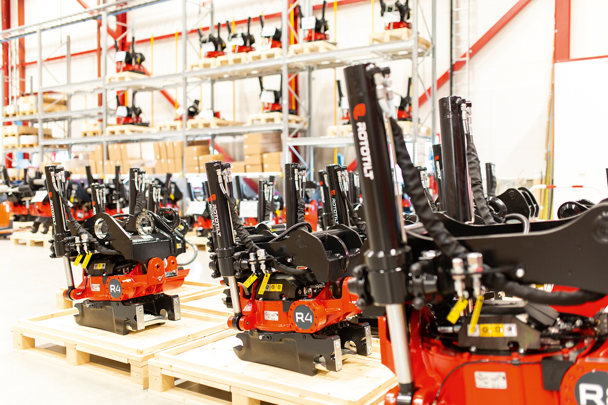 Mit der Erweiterung seiner Produktionskapazitäten in Vindeln, rund 45 km nordwestlich von Umeå, steht Rototilt nach zweijähriger Bauzeit eine zusätzliche Fläche von rund 4 400 m² zur Verfügung. Produziert wird dort die gesamte Produktpalette. Die millionenschwere Investition begründet Rototilt mit der weiter starken Nachfrage: In Europa, insbesondere aber am deutschen Markt, sieht das Unternehmen gerade im Bereich der Tiltrotatoren weiterhin große Chancen. Aufgrund des zusätzlichen neuen Zentrallagers, das kürzlich unweit des Flughafens Arlanda in Rosersberg eingeweiht wurde, kann Rototilt künftig auch auf weit kürzere Lieferzeiten sowie eine erhöhte Flexibilität zurückgreifen. »Die Lieferzeiten nach Zentraleuropa lassen sich damit um einen Tag verkürzen – außerdem stehen uns mit dem neuen Distributionszentrum 2 500 m² Nutzfläche und rund 2 000 Palettenstellplätze zur Verfügung«, so Hampus Jonsson, Leiter Geschäftsbereich QuickChange bei Rototilt. »Unser bisheriger Erfolg basiert in erster Linie auf einer zielgerichteten Produktentwicklung, bei der der Anwender in den Fokus rückt.«
