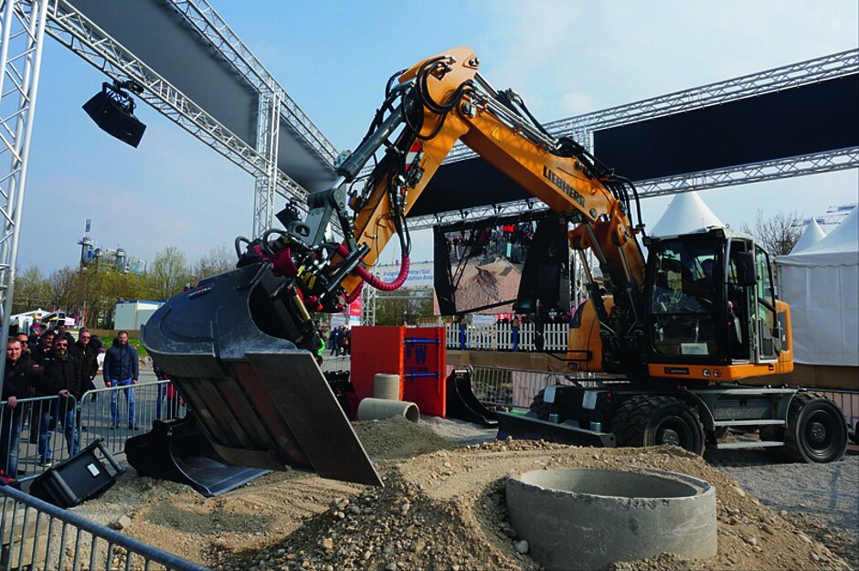 Richtig voll sei es rund um den 250 m² großen Stand im Freigelände Nord zu den stündlichen Live-Demos geworden. Eines der Highlights war der starre Sieblöffel in Verbindung mit der im ICS-Steuersystem integrierten Rüttelfunktion, der dank hochwertigem Stahl als besonders verschleißresistent gilt. Im Mittelpunkt der Demos standen auch die Rototilt-Positionierungslösung (RPS), die erhöhte Präzision bei der Integration ins Baggersteuersystem verspricht, das Schnellwechsler-Sicherheitssystem SecureLock, durch das die Anbauwerkzeuge stets richtig angekoppelt sind, sowie die Möglichkeit des Rototilt-Festanbaus in Verbindung mit QuickChange-Wechsler. Dadurch lassen sich hydraulische Anbaugeräte innerhalb weniger Sekunden wechseln.