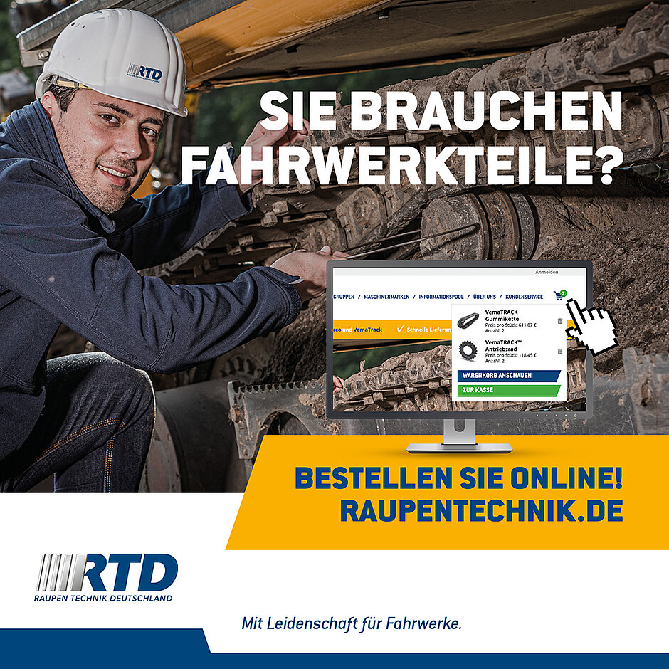 Im Webshop von RTD können Sie Fahrwerkteile der Spitzenmarken VemaTrack und Berco bestellen. Seit kurzem verfügt RTD auch über die Berco Service-Line; Premiumprodukte zu einem günstigen Preis!
