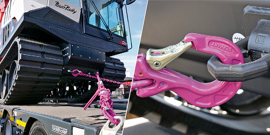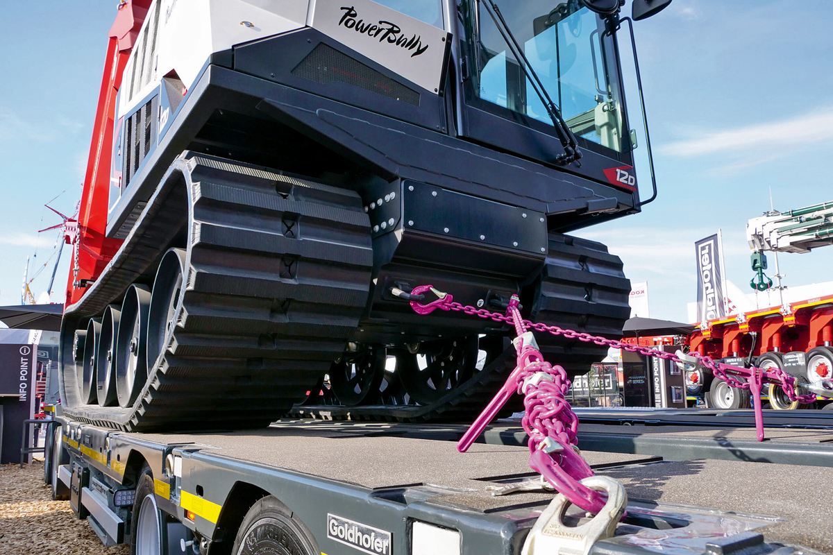 Wer auf der diesjährigen Bauma wissen wollte, warum die mit RUD-Zurrmitteln realisierte Transportsicherung eines Kässbohrer-»PowerBully 12D« auf einem Goldhofer-»Trailstar«-Tieflader vorgestellt wurde, der erhielt von RUD-Key-Account-Manager Felix Maier folgende Antwort: »Wir wollten ein Musterbeispiel für eine Verzurrung zeigen, die allen technischen Normen und damit auch allen rechtlichen Vorgaben entspricht.« Das Quartett, bestehend aus Goldhofer AG, Kässbohrer Geländefahrzeug AG, RUD Ketten Rieger & Dietz GmbH u. Co. KG und Max Wild GmbH, nennt seinen Schulterschluss »Süddeutsche Allianz«.