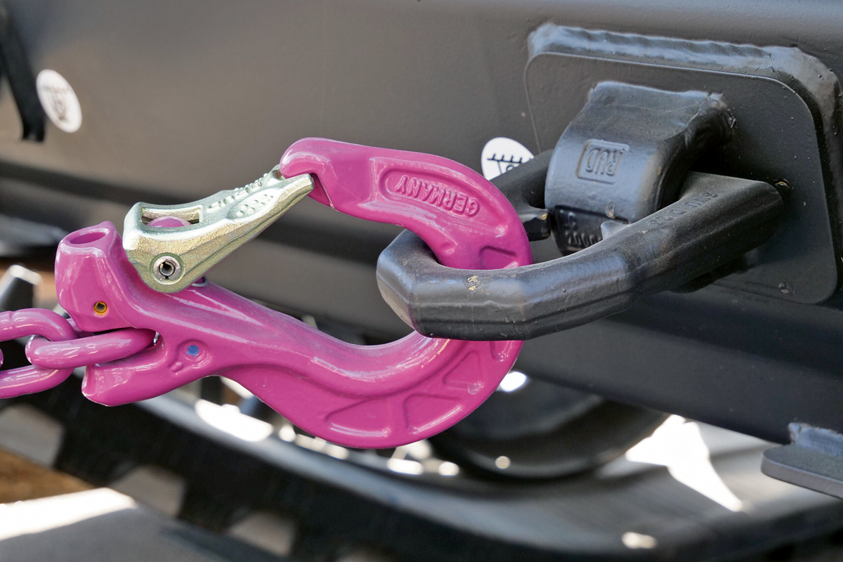 Damit wollen sich die Unternehmen für eine konsequentere Ladungssicherung beim Straßentransport von Erdbaumaschinen einsetzen und gemeinsam mit gutem Beispiel vorangehen – wohlwissend, dass hier nicht nur der Anwender gefragt ist: »Wir sehen die Verantwortung ganz klar schon beim Fahrzeughersteller. Er muss sich bereits in der Entwicklung Gedanken über das Verladekonzept machen«, stellt Roman Ströbele von Kässbohrer Geländefahrzeug klar. Im Mittelpunkt steht für die Projektpartner dabei das Thema Zurrpunkte. Sie sind bei jeder Erdbaumaschine und jedem Transportfahrzeug Standard und sollten deshalb nach Dafürhalten der »Süddeutschen Allianz« auch von Anfang an integraler Bestandteil jeder verantwortungsvollen Fahrzeugkonstruktion sein. »Richtige Ladungssicherung beginnt in der Entwicklungsphase«, bringt Felix Maier von RUD die gemeinsame Überzeugung auf den Punkt.