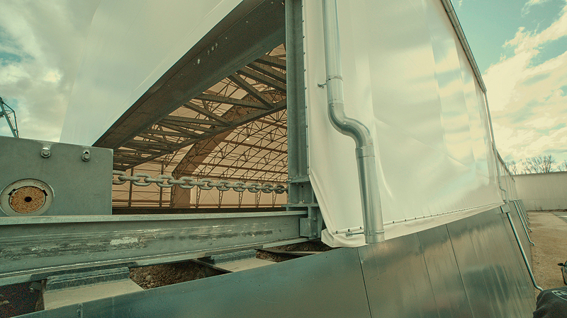 2-in-1-Ketten-Antriebssystem verschiebt Hallendach