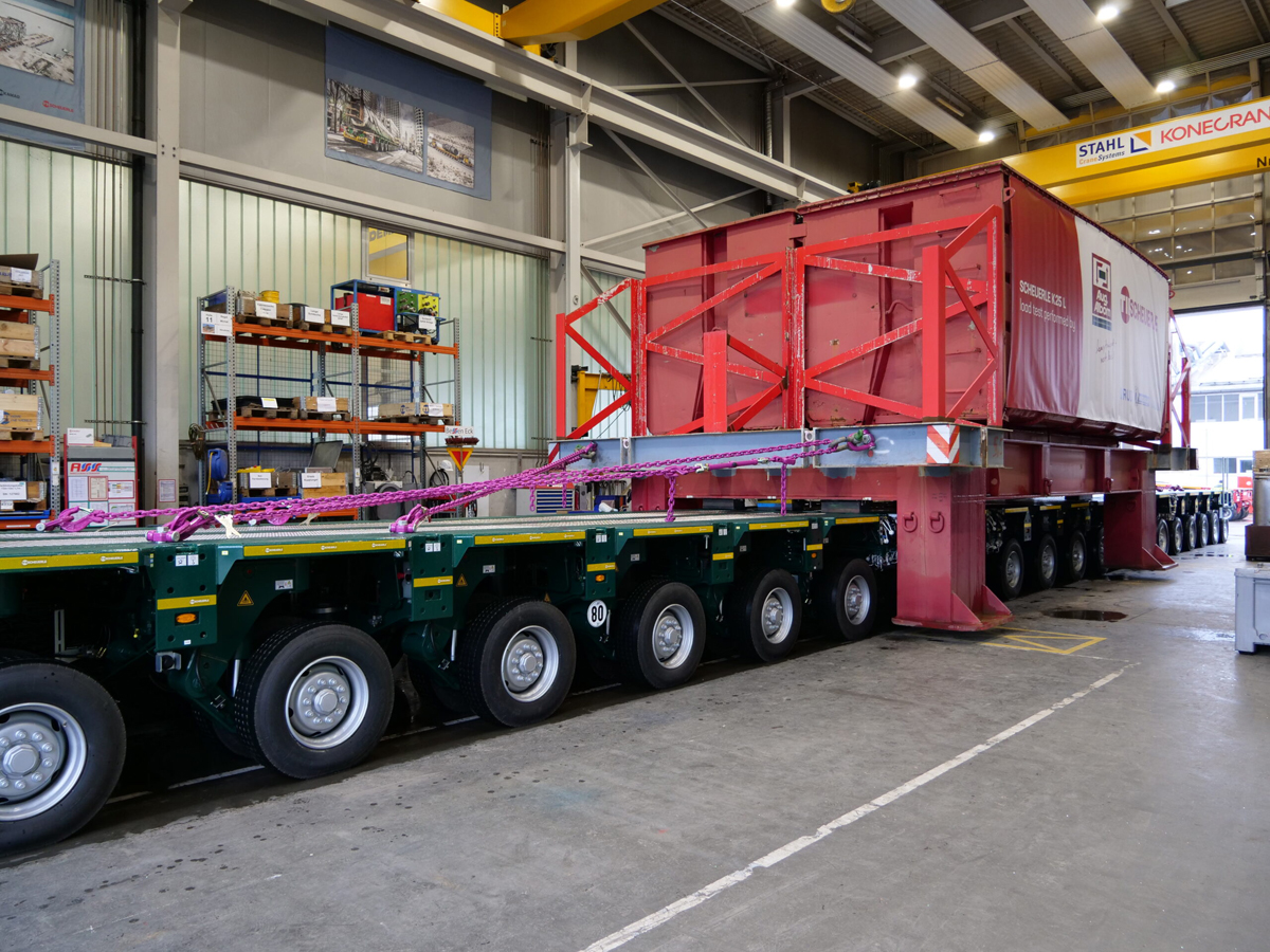 In einem Testlauf am 12. Februar 2025 konnte die Verzurrungslösung ihre Leistungsfähigkeit dann erstmals auch in der Praxis unter Beweis stellen. Der von Alborn eingesetzte Scheuerle K25 L Plattformwagen transportierte eine 215 Tonnen schwere Probelast, die mithilfe von ACP-Turnado Zurrpunkten und ICE Zurrketten von RUD gesichert worden war, zuverlässig und ohne Unterbrechungen. Die Alltagstauglichkeit der Lösung ist damit uneingeschränkt nachgewiesen. Entsprechend zufrieden fällt auch das Fazit von Helmut Alborn aus: „Zu wissen, dass diese Kombination aus Schwerlastmodul und Zurrmitteln allen Anforderungen gewachsen ist, lässt mich ruhig schlafen – weil ich weiß, dass ich für Mitarbeiter und Kunden das Maximum an Sicherheit realisiert habe. Darauf lege ich allergrößten Wert, und dafür bin ich auch gerne bereit, in hochwertigste Technik zu investieren.“