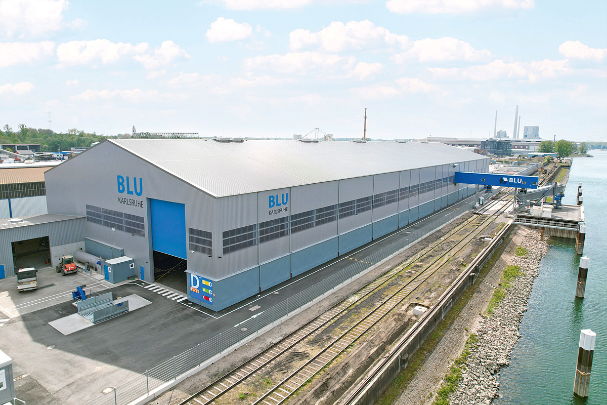 Neben der arbeitswirtschaftlichen Optimierung soll die Halle auch optisch punkten. Bei einem Blick ins Innere der Halle fällt die Stahl-Leimholzkonstruktion ins Auge, die bei Umschlaghallen eher selten zu finden ist. Die freitragende Leimholzkonstruktion gilt als eine der Spezialitäten von Hörmann. In der Halle werden mineralische Abfälle wie Boden, Bauschutt, Straßenaufbruch und Gleisschotter sowie Schüttgüter, wie Sand, Kies und Schotter, zwischengelagert und für die Lkw-, Bahn- und Schiffverladung umgeschlagen. Die Stoffe werden sortiert, bearbeitet und dann wieder herausgefahren. Für diesen Prozess sind neben ausreichend Platz und Höhe auch Boxen ohne Stützen und Schüttgutwände aus Stahl erforderlich.