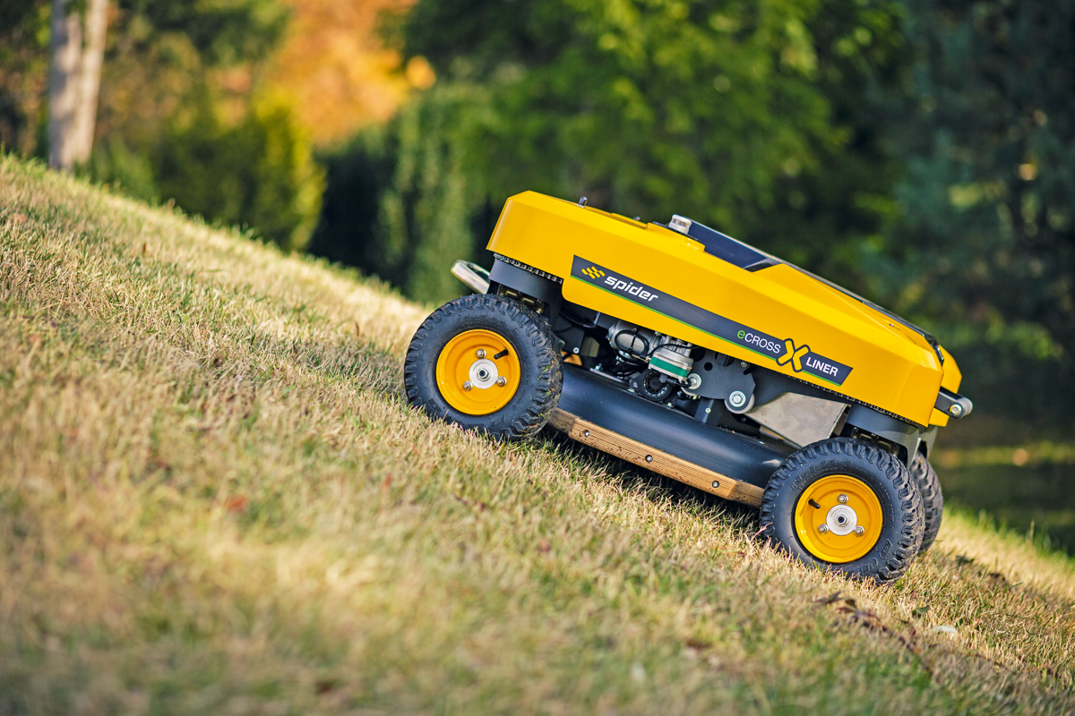 Ob Straßenböschung, Park, Ufergebiet oder unter der Freiflächen-Photovoltaikanlage: Dank der Steigfähigkeit bis zu 35° und der flexiblen Schleuderlenkung soll der eCross Liner schwieriges Terrain geradezu mühelos schaffen. Weil er lokal keine schädlichen Abgase ausstößt, werden Mäharbeiten in der Nähe von Spielplätzen, Schulen, Krankenhäusern oder Schutzgebieten zu einem geeigneten Einsatzort für das vollelektrische Spider-Modell. Da seine vier Räder um 360° drehbar sind, lässt sich der eCross Liner in jede Richtung per Funkfernsteuerung bewegen, um auch Hindernisse sicher zu umfahren.