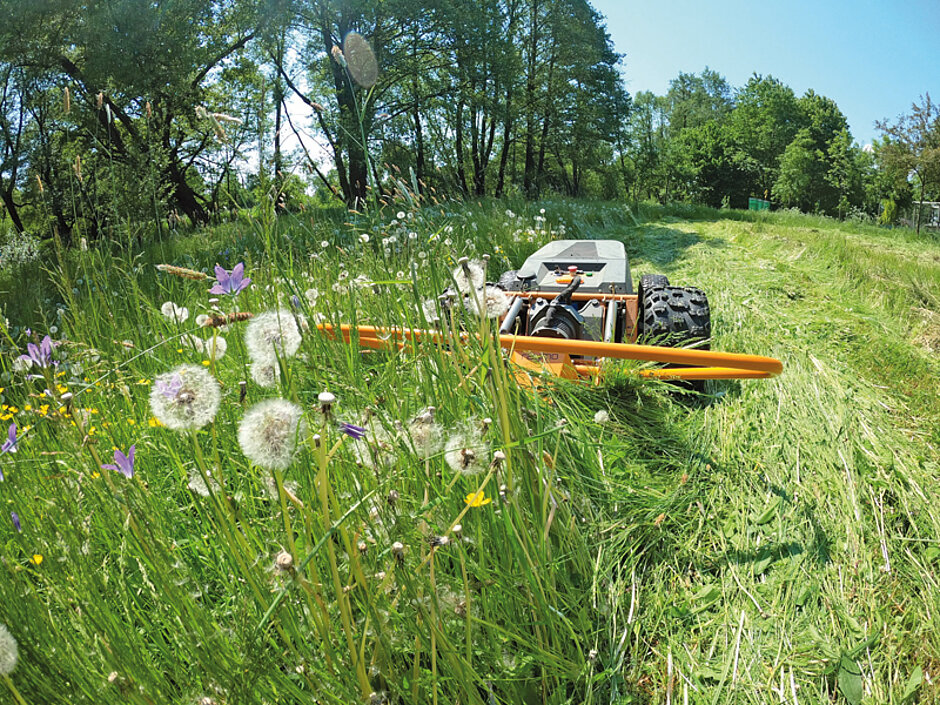 Dank einem Powerswap-System kann Raymo mit einem Akkupack oder einem Plug-in-Hybrid-Set ausgestattet werden. Als Plug-in-Hybrid ermöglicht der Mäher eine maximale Betriebszeit von acht Stunden, mit einem Akkupack läuft er laut Anbieter bis zu fünf Stunden vollelektrisch, emissionsfrei und leise – das ist speziell an geräuschsensiblen Orten ein großer Vorteil, an denen Motorenlärm stören würde. Zudem können im Akkubetrieb keine Abgase oder flüssige Schmierstoffe wie Öl austreten – somit ist sichergestellt, dass keine Schadstoffe in Böden und Wasser gelangen. Und das gemähte Gras dient beispielsweise als Futtermittel und kann bedenkenlos in Auen oder Wasserschutzgebieten verbleiben.