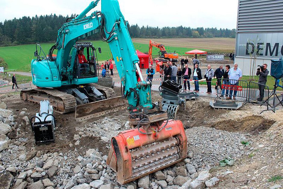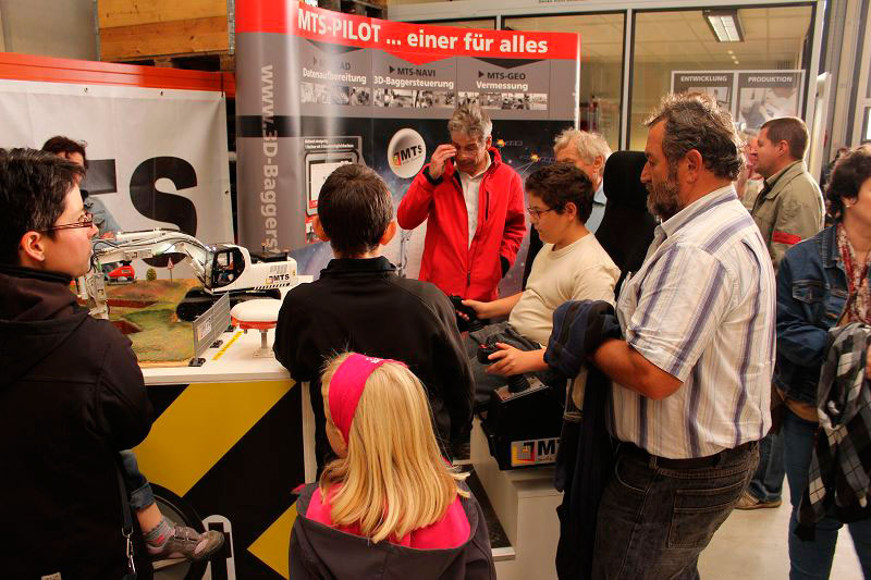 Rund 5000 MTS-Besucher hatten die Gelegenheit, sich an 33 Stationen über innovative Tiefbautechnologien zu informieren: Angefangen bei einem ganztägigen Life-Demo-Parcours über anspruchsvolle Baggerfahrer-Wettbewerbe bis zum Geo- und Präzisions-Caching am Stand der hauseigenen 3D-Baggersteuerung. Die Themen reichten von Bodeneinbau und Bodenverbesserung über den Leitungstiefbau, den Bereich Abbruch und Recycling bis hin zur neuen 3D-Baggersteuerung aus dem Hause MTS. Installationen wie der 3D-Baggersimulator und das MTS-Bodenlabor ermöglichten Fachkundigen und Interessierten praxisnahe Einblicke in einige Arbeitsschwerpunkte des Automatisierungsspezialisten.Einblicke in die Produktion lieferte ein Rundgang durch die neue „MTS-Manufaktur“. Hier konnten die Besucher anschaulich verfolgen, wie aus einem „Bollen Eisen“ High-Tech-Produkte mit einer MTS-Fertigungstiefe von über 90 % werden. Der Rundgang führte vorbei an Stahlbau, Sandstrahlkabine und Lackiererei über CNC-Bereiche und Montage bis zur hauseigenen Hard- und Softwareentwicklung.Gesäumt wurde der Themen-Parcour durch ein buntes Begleitprogramm: Für Fahrspaß beispielsweise sorgte eine Quad-Strecke für Kids, während beim Baggerfahrer-Wettbewerb und auf der Miniatur-Baustelle nach Lust und Laune angebaggert, hochgestapelt und aufgetragen werden durfte. Musikalischer Auftakt für den Familien-Sonntag war ein Frühschoppen mit Blasmusik. Am Nachmittag durften sich die Gewinner einer großen Verlosung dann auf ihre Preisverleihung freuen, denn unter allen Quiz-Freunden verloste MTS ein iPad, ein Kinder-Quad und einen ferngesteuerten Spielzeugbagger.