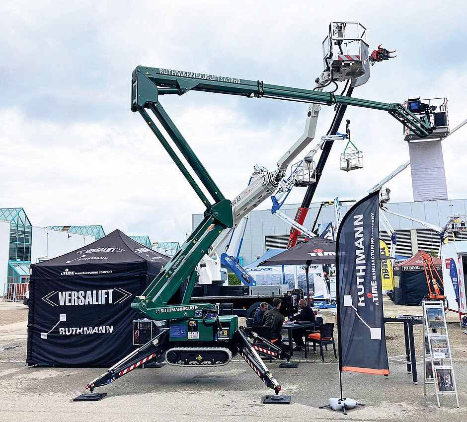 Ein weiteres Highlight am Messestand ist die »Bluelift SA 18 HB« in der Sonderedition »Baumpflege-Grün«. Die kompakte Raupenarbeitsbühne mit 18 m Arbeitshöhe besticht durch ihr geringes Eigengewicht und ihre Vielseitigkeit. Sie eignet sich besonders für empfindliche Einsatzorte wie Parks, Innenhöfe oder unwegsames Gelände. Die grüne Sonderlackierung betont den spezifischen Einsatzzweck im Bereich der Baumpflege.s