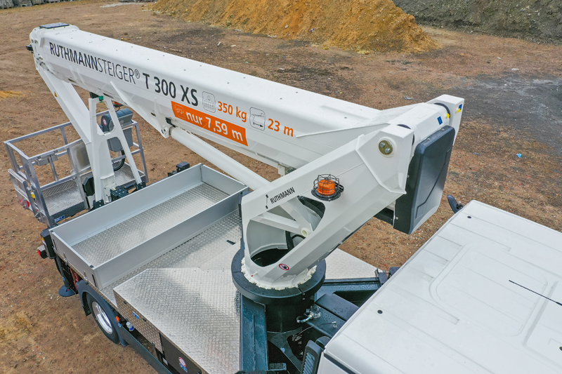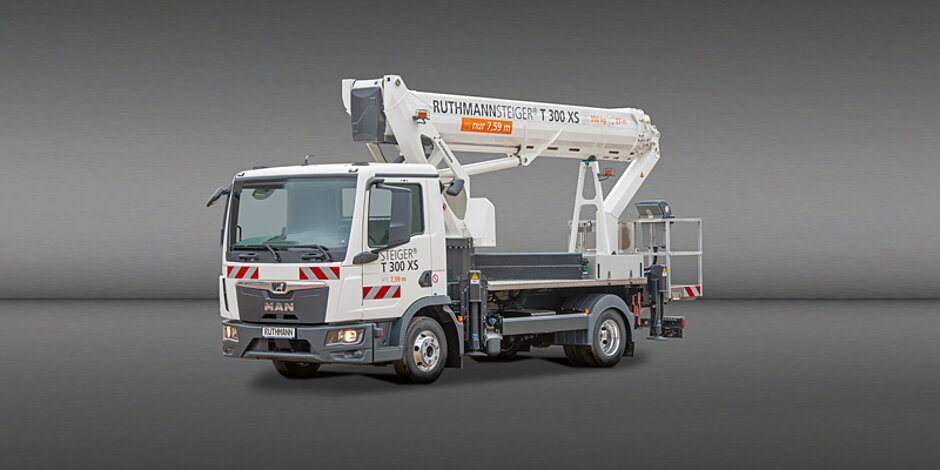 Durch die kürzere Baulänge und den verringerten hinteren Überhang soll sich der Steiger T 300 XS noch sicherer im urbanen Umfeld einsetzen und durch die höhere Reichweite einen größeren Einsatzbereich abdecken lassen, ohne die Hubarbeitsbühne umsetzen zu müssen. Damit dürfte der Ruthmann Steiger T 300 XS für viele Einsatzbereiche von der Gebäudereinigung bis hin zum Baumschnitt interessant sein. Durch die erhöhte Korblast von 350 kg, in Verbindung mit einer großen Reichweite, können sich weitere Einsatzmöglichkeiten ergeben. Teleskop, Unterbau und Turmeinheit des Steiger T 300 XS wurden von Ruthmann neu konstruiert, um die hohe Reichweite von 23 m mit erhöhter Korblast von 350 kg zu ermöglichen.