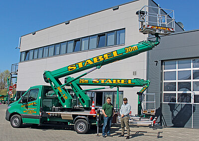 Der Steiger T 300 XS kann mit allen Arbeitskörben der Baureihe ausgestattet werden, beispielsweise mit Baumschnitt- und isolierten Arbeitskörben oder dem 2,1 m breiten Arbeitskorb. Dies ist mit zwei Personen und wenigen Handgriffen erledigt. Auch die hydraulische Korbdrehvorrichtung mit 2 x 90° ist beim Steiger T 300 XS serienmäßig vorhanden.