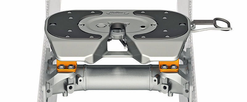 Als weltweit einzigartig beschreibt SAF-Holland seine Sattelkupplung FWAL-E aus geschmiedetem Aluminium: Sie ist um bis zu 55 kg leichter als andere Kupplungen. Das zudem optional erhältliche Weightsaver-Unterbausystem hilft weitere 35 kg einzusparen.