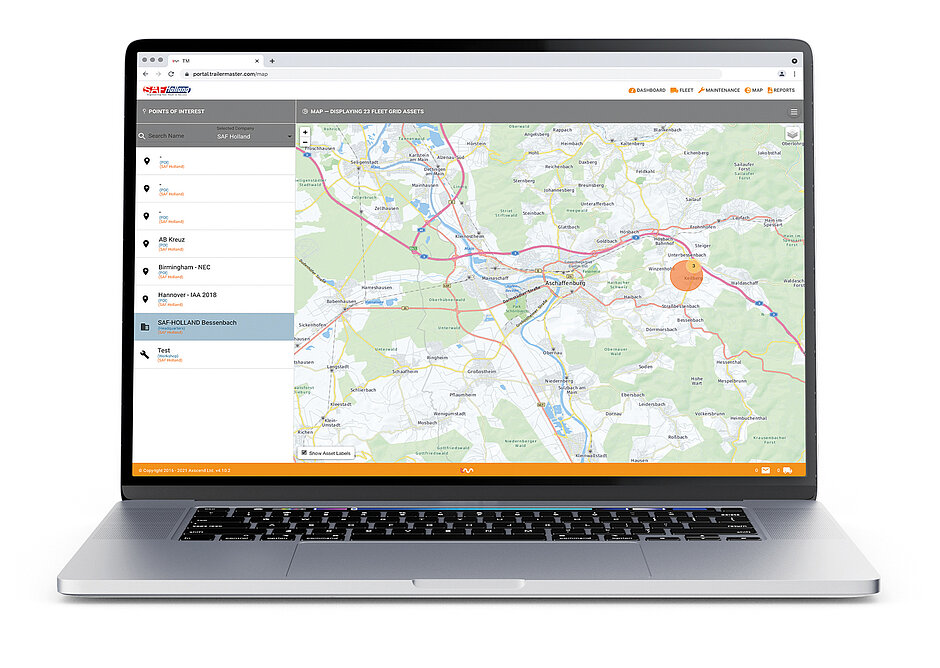 Mit dem SAF TrailerMaster der SAF-Holland Group können Transportprozesse digitalisiert werden: Das Telematik-System macht Trailer smart, vernetzt Komponenten und liefert digitale Daten in Echtzeit. Für Fuhrparkmanager bietet das zukunftsfähige Trailer-Management zusätzlichen Mehrwert, denn sie sehen den Zustand ihrer gesamten Flotte auf einen Blick, können sie verwalten und Wartungsvorgänge auswerten.