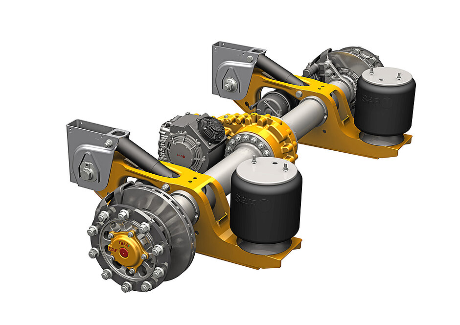 Für höchste Flexibilität und Wartungsfreundlichkeit sind die Betriebsstrategie und die einzelnen Komponenten der SAF TRAKr optimal aufeinander abgestimmt. Zahlreiche Bauteile sind fest in die E-Achse eingebaut. So können Fahrzeughersteller die SAF TRAKr mit nur wenig Aufwand montieren oder nachrüsten und dabei Standard-Schnittstellen nutzen. Einfach und kostengünstig ist auch die Wartung: Um Radköpfe und Räder zu demontieren, müssen weder das zentral angeordnete Getriebe mit dem daran angeflanschten Generator noch weitere HV-Komponenten demontiert werden. Verschleißteile wie Bremsbeläge oder Bremsscheiben sind identisch zu den Komponenten der nicht elektrifizierten Achsen von SAF-Holland. Das vereinfacht und sichert die Versorgung mit Ersatzteilen.