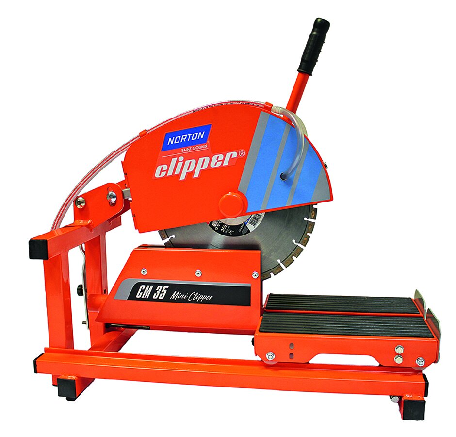 Die CM 35 Mini Clipper mit 230-V-Netzspannung ist als robuste und effiziente Maschine konzipiert, die saubere und präzise Schnitte in einer Vielzahl an Baumaterialien wie Mauersteinen, Pflastersteinen, Verblendern und Dachziegeln mit einer maximalen Materialhöhe von 180 mm liefert. Die Säge mit maximaler Schnitttiefe von 125 mm und maximaler Schnittlänge von 340 mm verfügt über einen separaten Anschluss für einen Industriestaubsauger, um den beim Trockenschnitt anfallenden Schneidstaub direkt absaugen zu können. Der absenkbare Schneidkopf unterstützt effizientes Stufenschneiden und bedingt eine längere Scheibenlebensdauer. Durch die Kühlwasserschläuche ist die CM 35 Mini Clipper auch im Nassschnitt einsetzbar, wenn sie an eine externe Wasserversorgung oder eine optionale Wasserpumpe angeschlossen wird.