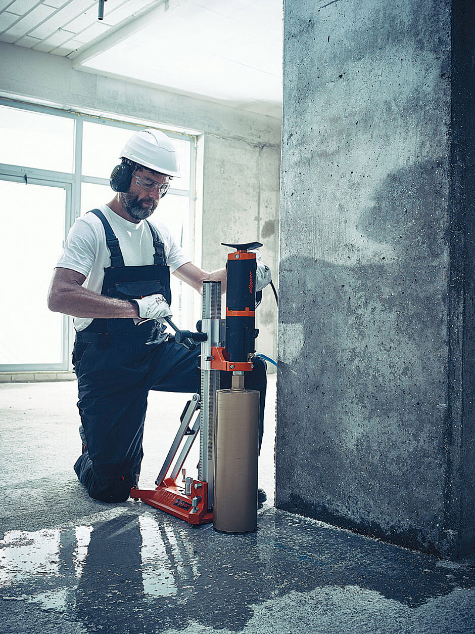 Komplettiert wird das Norton-Clipper-Kernbohrsystem durch verwindungssteife Bohrständer und ein breites Zubehörprogramm. So ist beispielsweise der Bohrständer CDR133 einfach zu bedienen und dank Alu-Leichtbauweise auch anwenderfreundlich. Die vier Polyamidrollen des Führungsschlittens sind leichtgängig und einfach zu reinigen. Die einstellbare Bohrkronenzentrierung steht für geringen Verschleiß an Werkzeug und Maschine. Durch den Laser-Bohrmittelpunktanzeiger lässt sich der Bohrständer präzise positionieren. Die Schnellwechselmotorhalsaufnahme zum raschen Montieren des Motors ohne Zusatzwerkzeug nennt Waldschmidt als weiteren Pluspunkt.