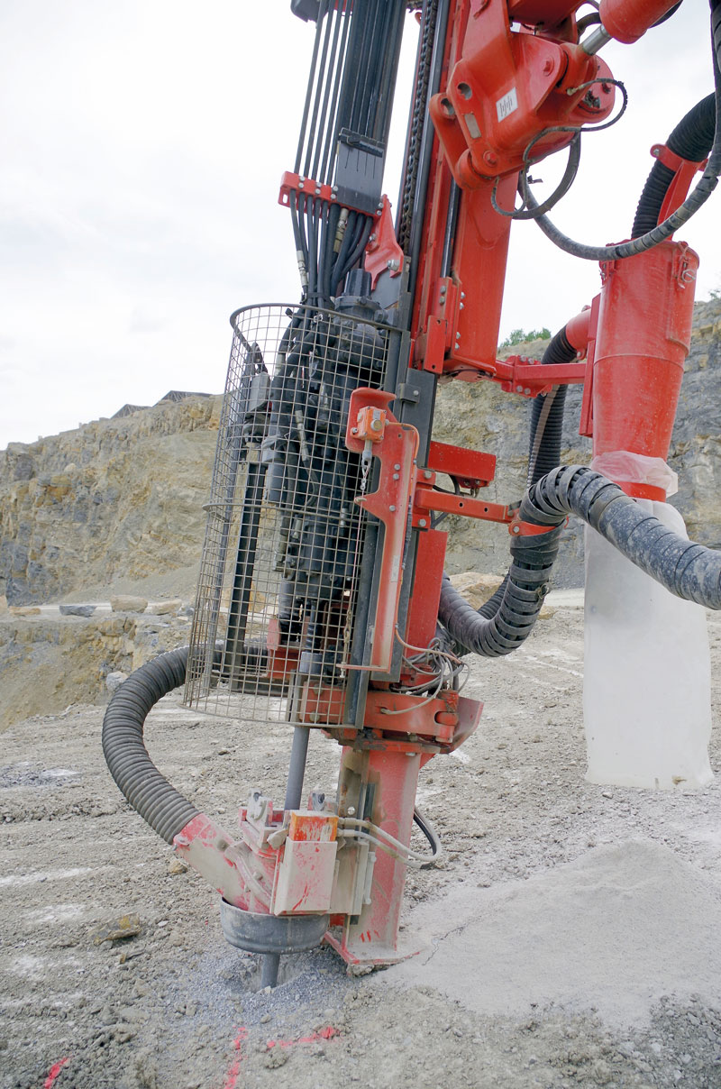 Beim Einsatz werden die Eigenschaften und Merkmale in Großenlüder-Müs immer wieder auch mal bis an die Grenzen gefordert und genutzt, wobei die Arbeitseffizienz nie leiden darf. Bernhard Pfohl ist sich sicher: »Ein Gerät, das hier seinen Mann steht, ist überall einsetzbar.« Präzision, Effizienz und Sicherheit stehen dabei gleichberechtigt im Blickfeld und: »Hier lieferte der Sandvik Ranger DX800 das überzeugendste Gesamtpaket«, betont Pfohl. Für alle Problemfelder hat das Modell die passenden Antworten – als Standard oder Option. »Ein Kriterium war daher durchaus auch die Möglichkeit, ein gut ausgestattetes Basisgerät um die für uns wertvollen Optionen zielgenau aufrüsten zu können«, so der Steinbruchleiter.