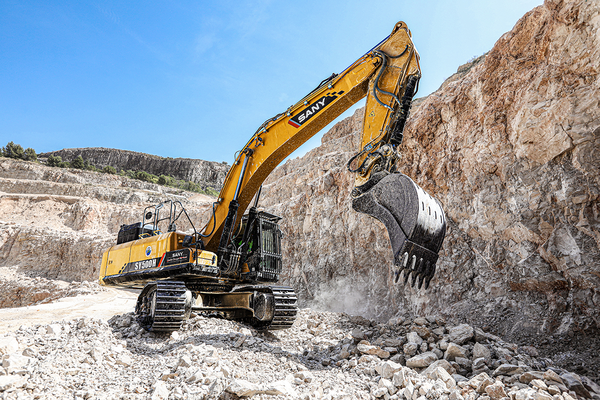 Im Fokus stand der aktuell schwerste Serien-Raupenbagger SY500H, der rund 52,5 t auf die Waage bringt. Neben der robusten Bauweise der Maschine könne sie mit neuster Abgastechnologíe und einem modernen Arbeitsumfeld überzeugen, das dauerhaft ermüdungsfreies Arbeiten ermöglichen soll. Für die Sicherheit sorgen neben dem guten Rundumblick durch eine Kamera auch die komfortable Kabine mit 10“ Touchdisplay.