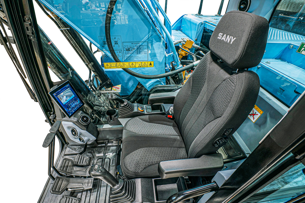 Mit dem SY215E präsentiert Sany eine zukunftsweisende Alternative im 23-t-Segment. Als vollelektrischer Kettenbagger mit einer 150 kW starken Elektromotorisierung und einer 422-kWh-Lithium-Eisenphosphat-Batterie bietet die Maschine eine emissionsfreie, geräuscharme Lösung für Kunden, die auf Nachhaltigkeit setzen. Die grüne Baustelle der Zukunft gewinnt zunehmend an Bedeutung, insbesondere im Hinblick auf die Erreichung der CO₂-Reduktionsziele. Die Batterie zeichnet sich durch ihr geringes Gewicht und eine hohe Leistungsdichte aus. Ihre umweltfreundliche Herstellung kommt ganz ohne Kobalt aus – ein Rohstoff, der als eines der größten Risiken in der Lieferkette der Batterieproduktion gilt. Im Vergleich zu dieselbetriebenen Modellen reduziert der SY215E die Betriebskosten um 40 Prozent und die Wartungskosten um 60%. Dank der DC-Schnellladefunktion kann die Batterie innerhalb von 1,5 Stunden von 20 auf 100 Prozent geladen werden. Eine 270°-Sichtfeldkamera und ein modernes 10-Zoll-Touch-Display runden das Bedienerlebnis ab.