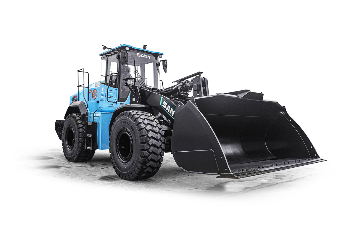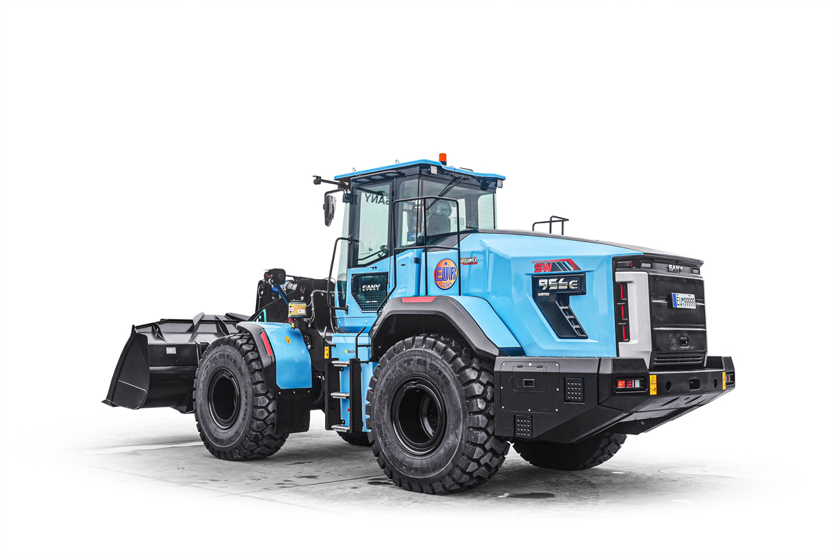 Mit dem SW956E bringt SANY einen vollelektrischen Radlader in der 20-t-Klasse auf den Markt, der sowohl leistungsstark als auch nachhaltig ist. Damit ergänzt er das Portfolio, in dessen Bereich sich bisher die Verbrennervariante SW405 als Erfolgsmodell etabliert hat. Die Maschine bietet eine Spitzenleistung von 240 kW, angetrieben durch eine CATL-Batterie mit 282 kWh oder 350 kWh Kapazität, die je nach Variante eine Laufzeit von vier bis sechs oder sechs bis acht Stunden ermöglicht – somit 10 Prozent länger als vergleichbare Wettbewerbsmodelle. Damit unterstreicht SANY einmal mehr seine Vorreiterstellung, wenn es um die Elektrifizierung der Baumaschine geht. Der CRRC-Permanent-Synchronmotor liefert ein beeindruckendes Spitzendrehmoment von 2800 Nm, während die Kipplast im geknickten Zustand über 12 Tonnen beträgt. Die Schrägverzahnung des SANY-STE-Getriebes wurde optimiert, um die Lebensdauer und Effizienz weiter zu verbessern. Dieses Drehmoment führt zu enormen Schubkräften im Ladebetrieb und steigert die Effizienz der Maschine. Ein 360°-Panorama-Kamerasystem sorgt für optimale Sichtverhältnisse und mehr Sicherheit auf der Baustelle.