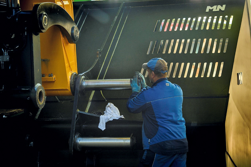 Für einen verbesserten Schutz der beanspruchten mechanischen Bauteile wurde eine Zentralschmieranlage eingebaut. Das soll manuelles Abschmieren überflüssig machen, somit jeden Tag eine Menge Wartungsaufwand sparen und die Lebensdauer durch präzise automatische Dosierung verlängern.