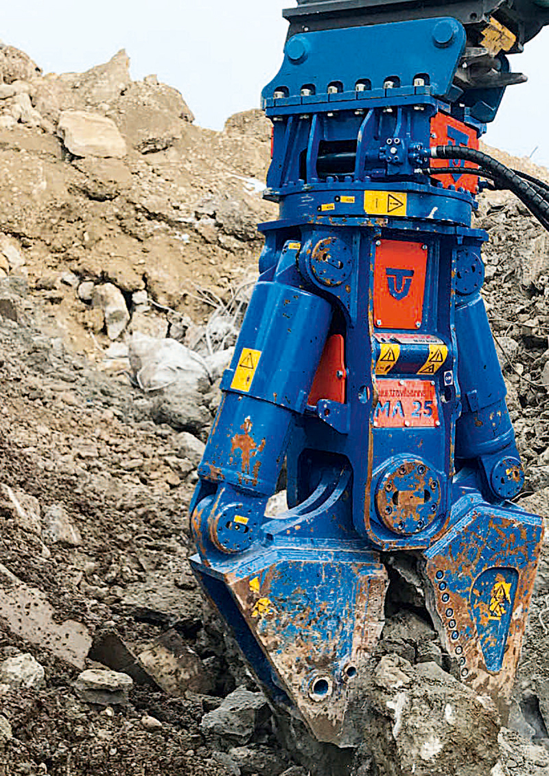 Als stark, schnell und modular sowie ebenso auch kraftvoll und robust gilt laut SAT das Modell MA 25. Der stabile Zangenkörper trägt zwei starke Hydraulikzylinder, die per Eilgangventil kürzeste Zykluszeiten sichern sollen. Die Konzeption im Baukastenprinzip ermöglicht, dass jedes Gerät für den jeweiligen Einsatz mit entsprechenden Unterarmen ausgerüstet werden kann. Besonders hervorgehoben wird vom Unternehmen aus Seefeld bei München das Handling der MA 25. Ein hydraulischer Endlosdrehantrieb mit Überlastschutz gehört zur Grundausstattung. Zu den universellen Einsatzmöglichkeiten der CB-Version (Combi) zählen der leichte bis mittelschwere Gebäudeabbruch, der schwere Industrieabbruch (stark armierter Beton), das Schneiden von Stahlprofilen (allgemeine Baustähle), die Nachzerkleinerung und die Materialtrennung.