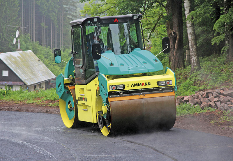 Die Drehschemellenkung ermöglicht zudem den beidseitigen Versatz der Walzen – den sogenannten Hundegang. Damit kann das Gewicht der Walze großflächiger verteilt werden: Auf sensiblen und dünnen Schichten können so Schäden bei der Verdichtung vermieden werden. Außerdem bietet der Hundegang durch seine Gewichtsverlagerung an unbefestigten Rändern oder an Böschungen erhöhte Sicherheit. Durch die geteilten Bandagen entstehen so auch bei engen Kurven keine Schubspannungen oder Risse. Mit den 1,68 m breiten Bandagen der ARP 95 kann im Hundegang eine Fläche von bis zu 3,3 m Breite bearbeitet werden – das spart Zeit. Verbaut wurde in der ARP 95 ein 100-PS-Motor von Deutz der Stufe Tier 4 interim. Durch die Kombination aus wassergekühlter Abgasrückführung (EGR) und Diesel-Oxidations-Katalysator (DOC) können Ruß- und NOx-Emissionen im Vergleich zu Tier 3 um bis zu 80 % eingespart werden. Mit der automatischen Leerlaufregelung des Motors benötigt die ARP 95 zudem bis zu 15 % weniger Kraftstoff gegenüber dem Vorgängermodell.